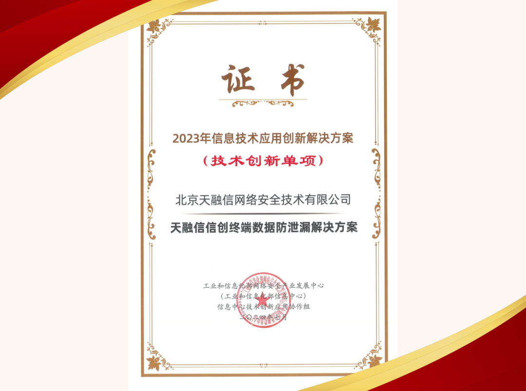 近日,由工信部网络安全产业发展中心等主办的2024信息技术应用创新发展大会暨解决方案应用推广大会在天津、浙江、福建、山东四地联动同步召开。会上公布了2023年信息技术应用创新解决方案征集遴选结果,天融信信创终端数据防泄漏解决方案成功入选“2023年信息技术应用创新解决方案(技术创新单项)”。