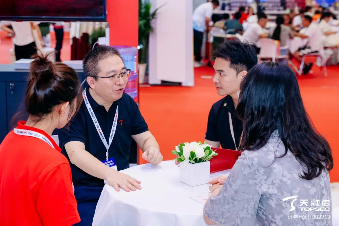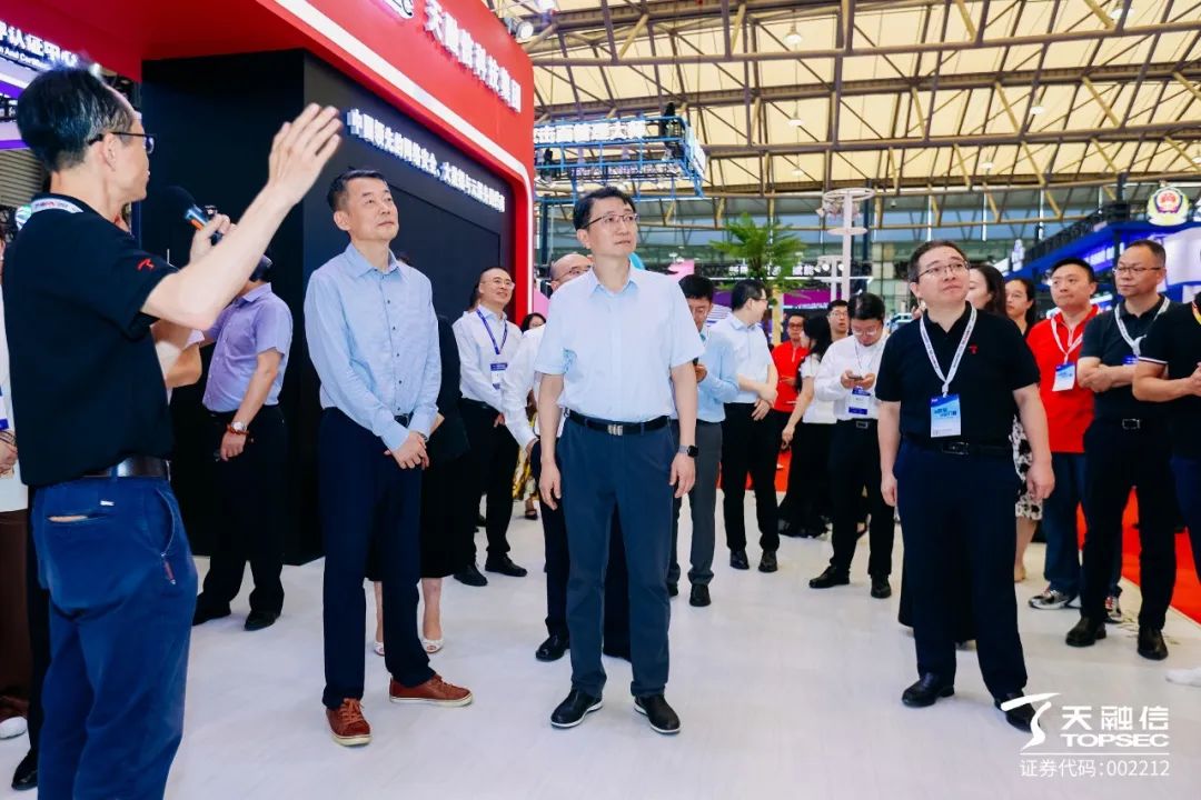 博览会盛况空前,中共上海市委网络安全和信息化委员会、上海市通信管理局、上海市公安局网络安全保卫总队等领导莅临天融信展区参观指导。在天融信科技集团上海平台总经理田治理的陪同下,了解了天融信近30年来在网络安全领域丰富的技术积累与实践经验,以及在工业互联网安全、数据安全、AI+安全等细分领域所取得的创新成果,特别对天融信在上海各行业安全保障工作中所做出的贡献给予了高度认可。