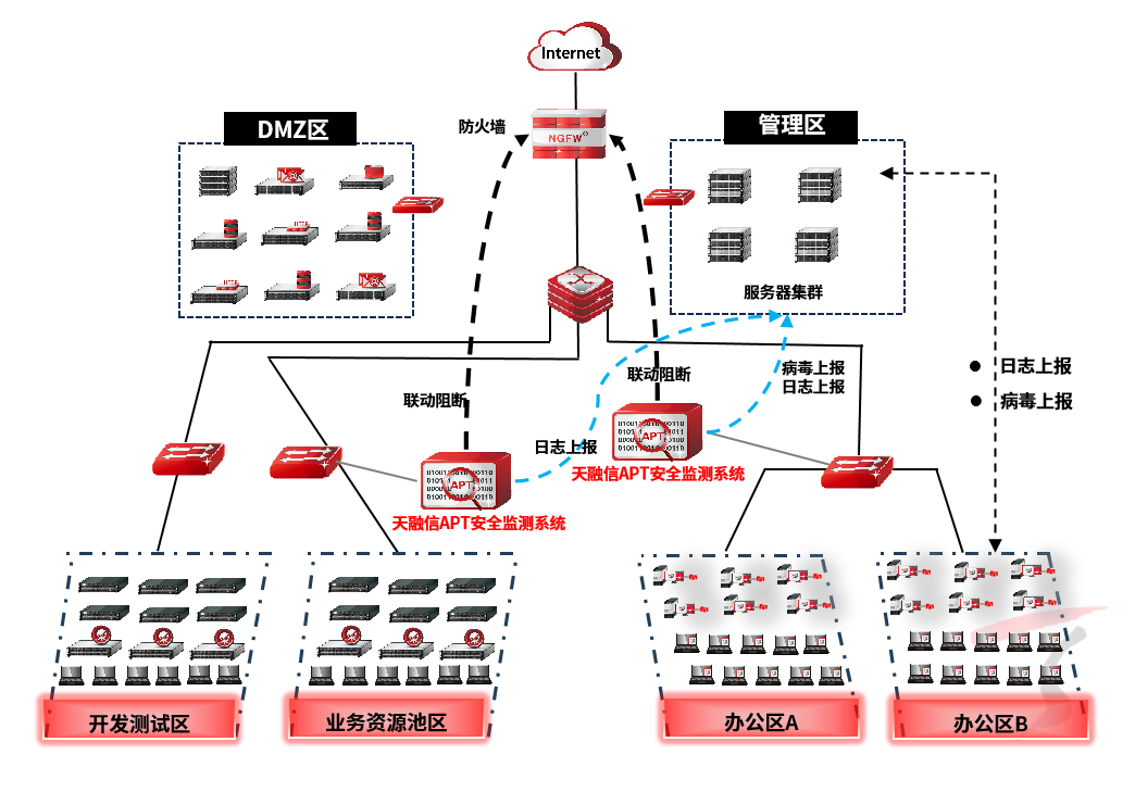 通过IT资源池全流量实时监测、高级持续性威胁精准检测、多场景攻击分析与快速溯源,天融信将帮助客户迅速定位攻击源头与受害目标,深入研判入侵途径及攻击者背景,全方位提升网络安全防护水平,有效保障业务系统稳定运行,大幅降低安全风险。