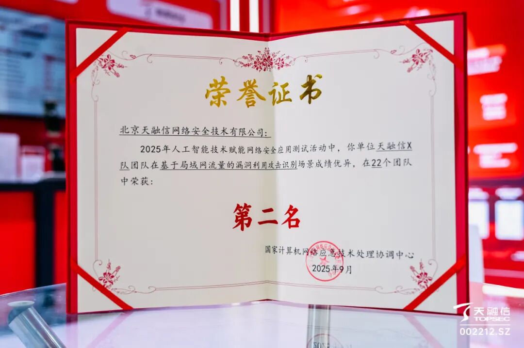 9月15日,2025国家网络安全宣传周网络安全技术高峰论坛主论坛在昆明正式启幕。会上,天融信深度参编的《政务大模型应用安全规范》正式发布,为政务领域大模型安全应用提供权威的技术依据与标准型支撑。同时,2025年人工智能技术赋能网络安全应用测试结果正式公布,天融信在「基于局域网流量的漏洞利用攻击识别」测试场景排名第二。