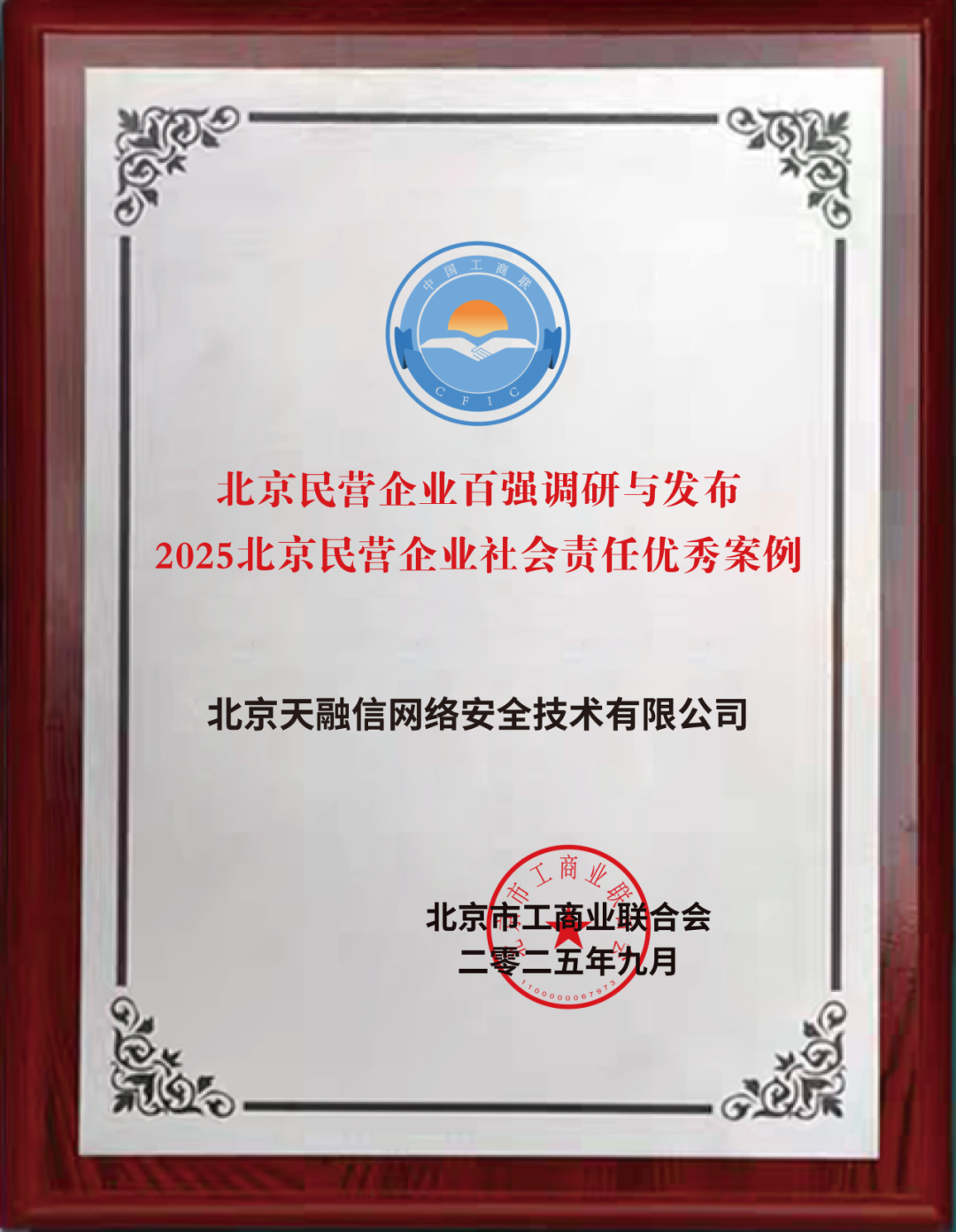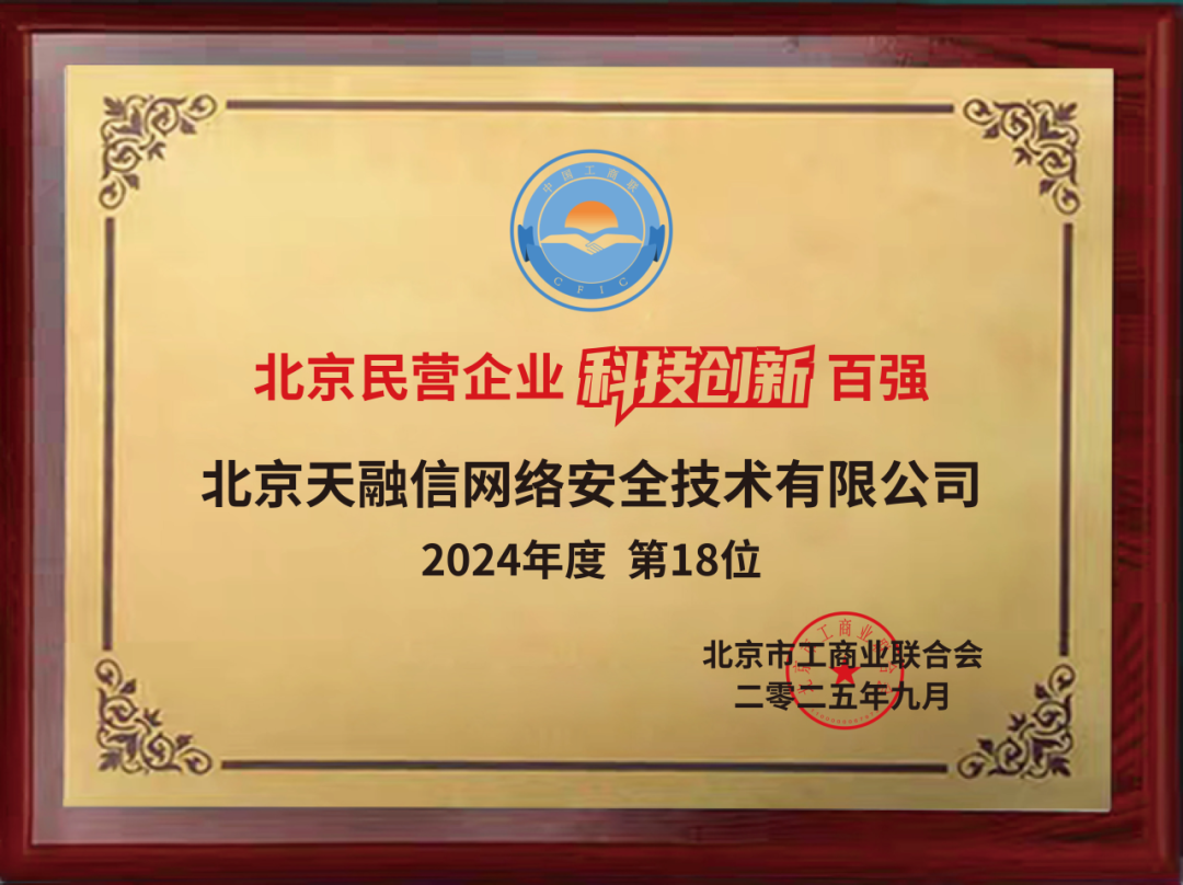 近日,北京市工商联举办“2025北京民营企业百强发布会”,正式发布“1+3”百强榜单和2个优秀案例入选企业名单。天融信科技集团凭借卓越的科技创新能力、突出的社会贡献以及前瞻的业务布局,第五次入选“北京民营企业科技创新百强”,并成功获评首届“社会责任优秀案例”和“投资优秀案例”,三大奖项印证企业实力。