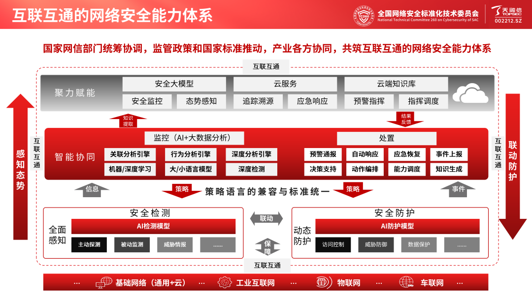 全国网络安全标准化技术委员会委员、 天融信 科技集团董事长兼CEO李雪莹在网安标委2024年第一次“标准周”全体会议上提到:“互联互通是实现网络安全能力跃迁的关键,也是必经之路。”