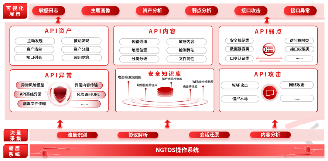 天融信 参照数据接口安全标准研制了API安全审计系统,产品依托深度数据内容检测能力,结合数据处理引擎、实时分析算法与智能分析技术,深入挖掘API传输内容,实现企业应用资产与API资产的高效识别梳理。