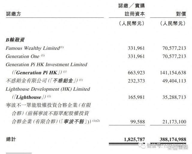 2020年12月完成3.88亿元B轮融资,每股成本为1.67元,其中,Famous Wealthy Limited、卫哲旗下Generation On分别认购7057.72万元,Generation Pi H(啓承资本)认购1.41亿元,不惑铂金认购4940万元,Lighthouse认购3529万元。