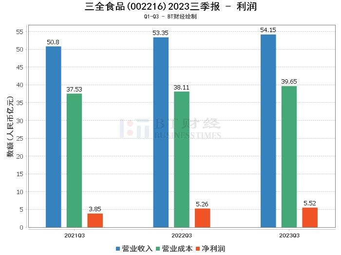 在利润方面,2023年三季度,三全食品的营业收入为54.15亿元,较上年同期的53.35亿元略有增长。营业利润为7.11亿元,较上年同期的6.91亿元有所增长。净利润为5.52亿元,较上年同期的5.26亿元增长。这表明公司的盈利能力在稳步提升。