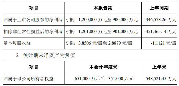 当日稍早,合力泰公告,预计2023年归属于上市公司股东的净亏损90亿元—120亿元,上年同期为亏损约34.66亿元。