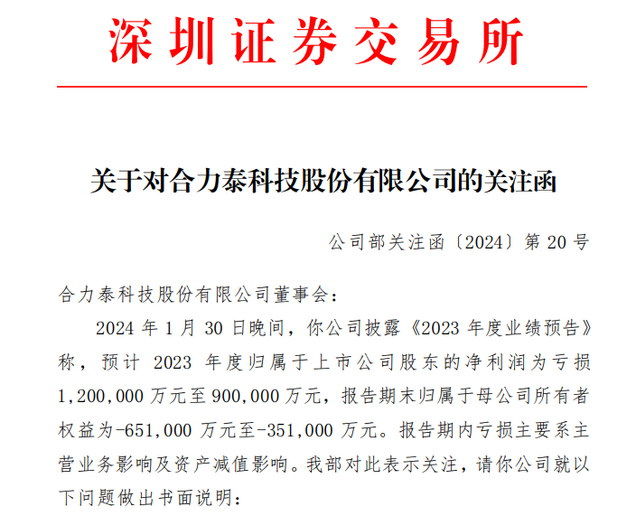 对于上述预告内容,深交所向合力泰下发关注函,要求结合公司所处行业市场供需情况、公司主营产品售价及成本波动情况、同行业可比公司情况等方面,量化分析报告期内公司销售额和毛利率均同比下降的原因等。