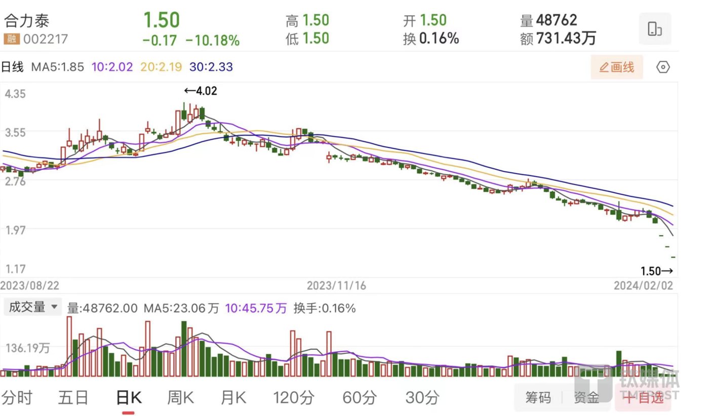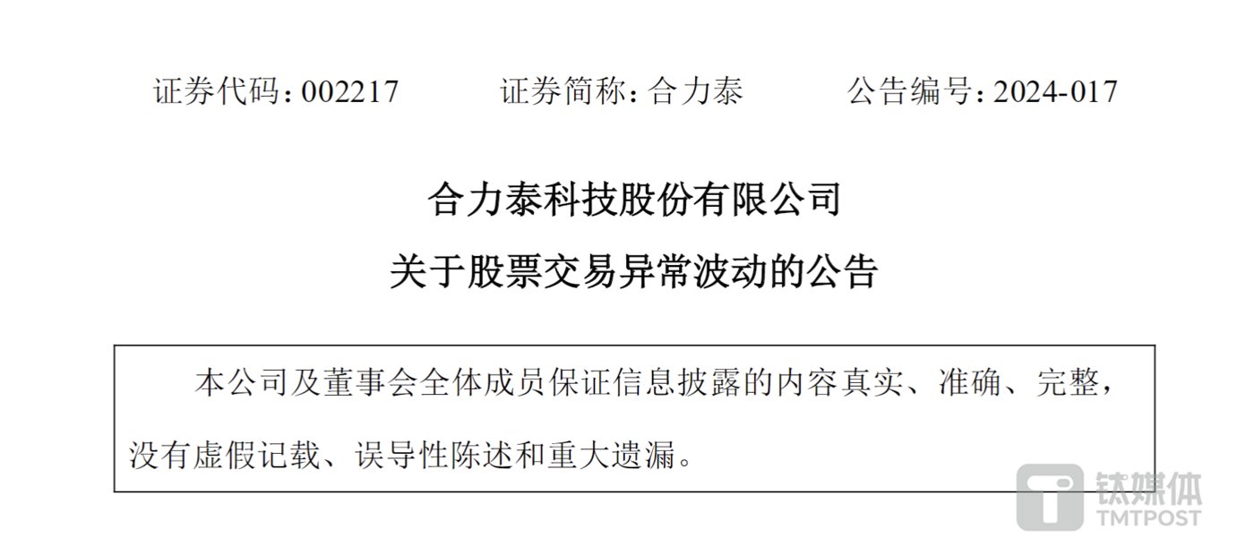 2月4日,合力泰(002217.SZ)发布了股票交易异常波动的公告,公司股价因连续3个交易日(1月31日至2月2日)收盘价格涨幅偏离值累计达到-20.81%,触及股票交易异常波动的情形。