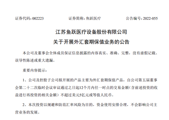 无独有偶,去年12月份,鱼跃连续发布了位于上海市虹口区的土地收储、房屋交易事项公告,以及高达约5亿美金或等价人民币的外汇套期保值业务公告,无不彰显着鱼跃医疗的“吸金能力”。