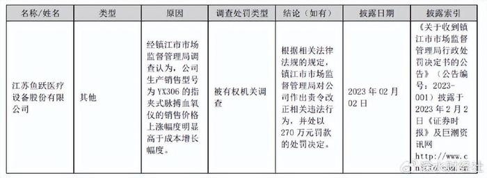 一般来说,哄抬价格的主要是经销商和终端药店,很少有厂家直接参与。然而自2022年12月开始,鱼跃医疗趁机抬高血氧仪价格,结果可想而知。据年报披露,2023年2月,鱼跃医疗被镇江市监局处罚270万元。