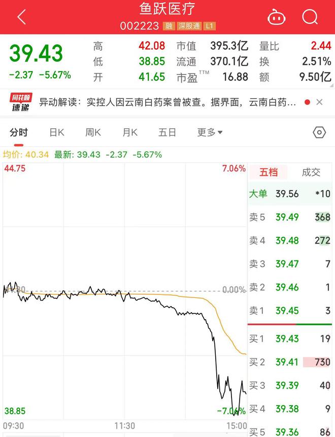 云南白药“窝案”仍在持续发酵!知名上市公司鱼跃医疗也被卷入其中。
