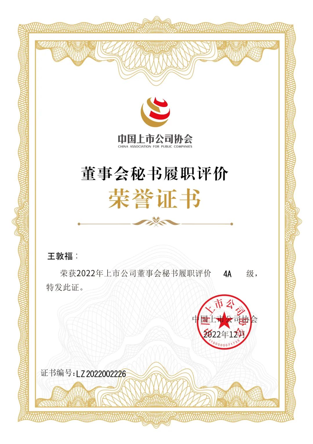 近日,中国上市公司协会发布“2022年上市公司董事会秘书履职评价”和“2022年度上市公司董办最佳实践”评选结果。