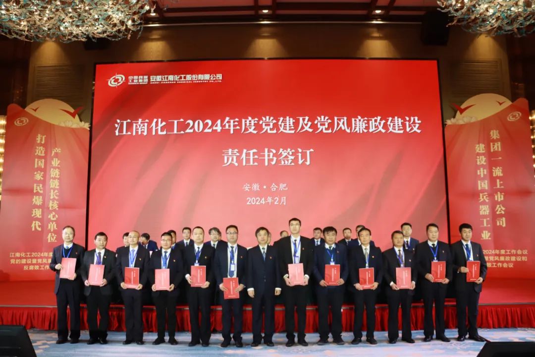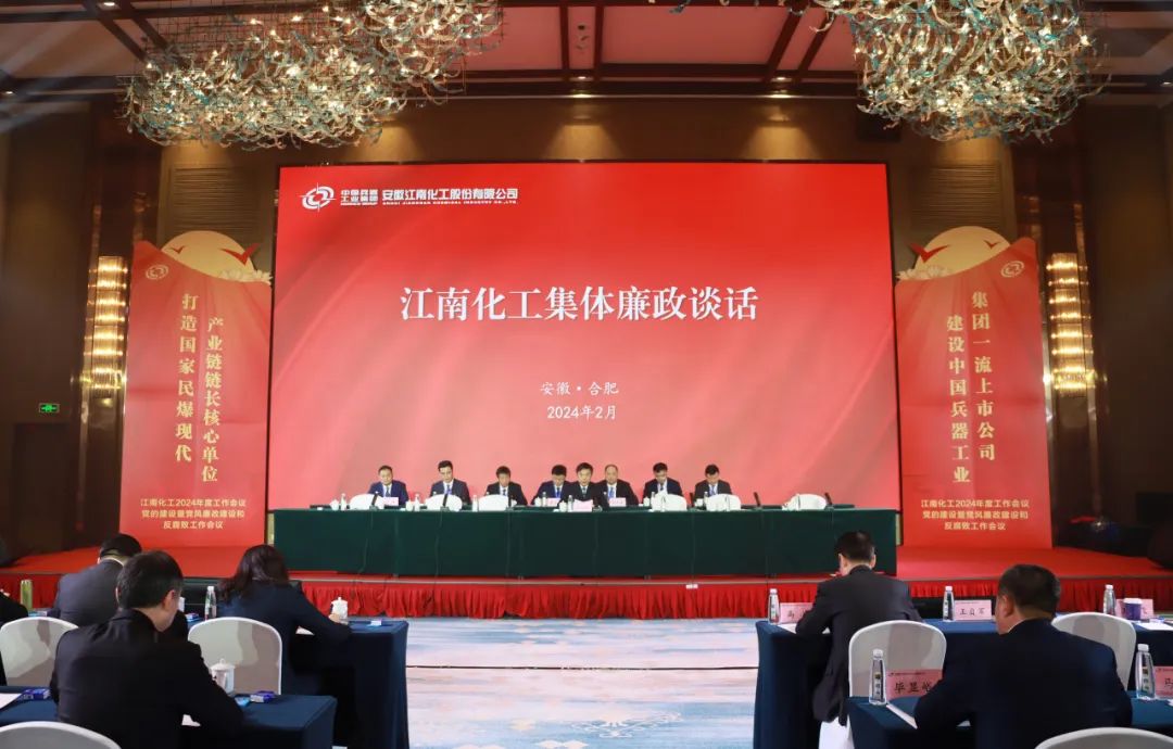 2月28日,江南化工召开2024年度党的建设暨党风廉政建设和反腐败工作会议,传达学习兵器工业集团、特能集团2023年度党的建设暨党风廉政建设和反腐败工作会议精神,回顾总结三年来和2023年江南化工党的建设、党风廉政建设和反腐败工作,梳理总结主题教育经验做法,系统谋划推进当前及今后一段时期党建工作,团结动员各级党组织和广大党员,破题、解题,实干、奋进,为打造国家民爆现代产业链“链长”核心单位,建设兵器工业一流上市公司汇聚磅礴力量。