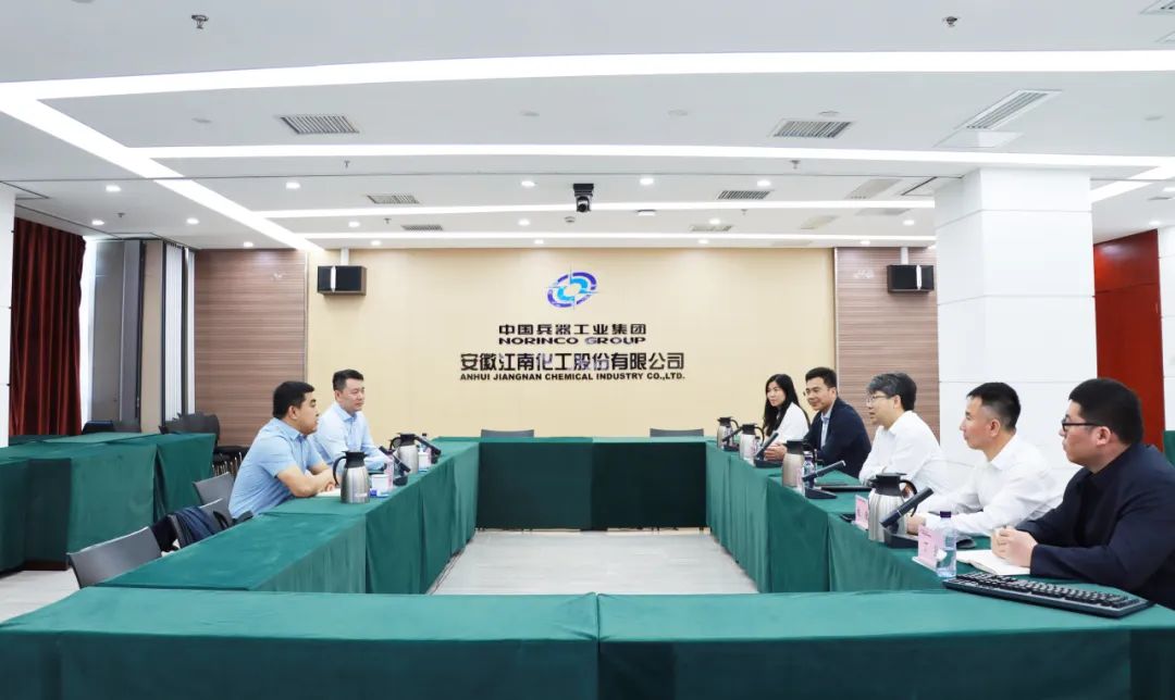 代五四对赵猛一行的来访表示欢迎,详细介绍了江南化工加入兵器工业集团三年来的经营状况和发生的巨大变化,回顾并肯定了双方前期的合作,希望进一步加强交流,发挥各自优势,在发展战略、科研体系建设、产业链“链长”核心单位建设、工业互联网+安全生产、“人、机、黑”生产线建设、重点工程项目等方面加强合作,为落实好集团公司“1+5”发展战略贡献力量。