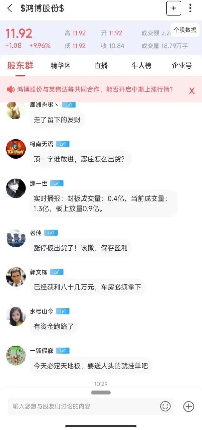 在尺度鸿博股份股东群,有投资者表示,ChatGPT没有实际经营利润,属于概念炒作而已。还有投资者表示,这种顶一字的做法,还是远离为好,该撤退,保存盈利。