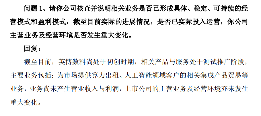 深交所关注函要求核查并说明相关业务是否已形成具体、稳定、可持续的经营模式和盈利模式,截至目前实际的进展情况,是否已实际投入运营,公司主营业务及经营环境是否发生重大变化。核查并说明截至目前相关业务是否产生营业收入与利润,对公司财务数据是否产生重大影响等。