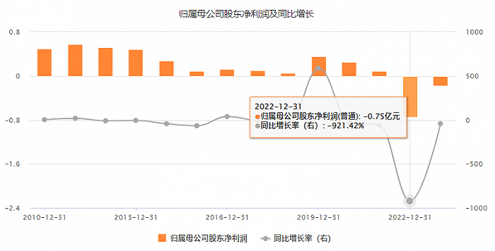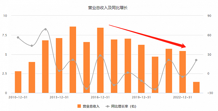 甚至在2022年和今年一季度,公司已然出现了亏损的情况,2022年全年归母净利润亏损达到0.75亿,一季度亏损0.18亿。而且从利润表明细来看,2022年的亏损完全由于主业疲软导致,去年整体营收下滑至5.46亿,而成本却出现了逆向增长达到6.04亿,同比增长7%,如此一来直接导致公司主业出现亏损。