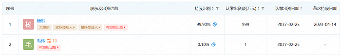 首先是4月13日,辉熠贸易将其持有的河南寓泰94.23%股权转让给黎小林;4月14日,毛伟将其持有的辉熠贸易100%股权转让给杨凯。2023年4月14日可查,毛伟旗下的两家主体公司均出现了股东变更。前有河南寓泰控股有限公司梨小林认缴7.35亿进入,后面杨凯认缴999万进入河南辉熠贸易有限公司,而毛伟出现了股权出质的情况。
