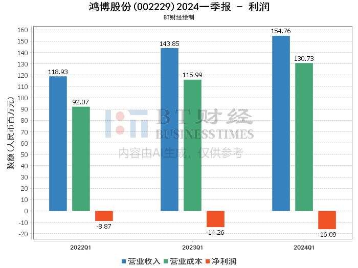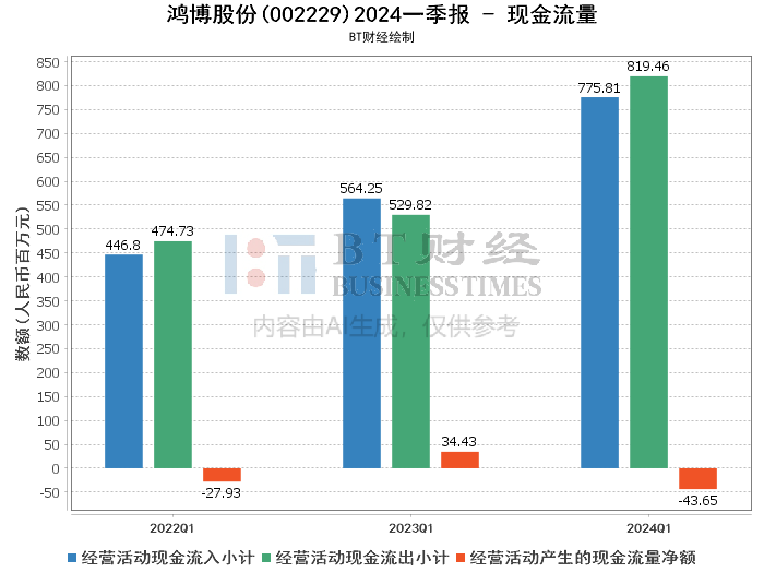 总体来看,鸿博股份在2024年第一季度的财务表现呈现出收入增长但利润下降的趋势,主要受到成本上升和毛利率下降的影响。尽管公司在资产和负债方面有所增长,但经营活动产生的现金流量净额大幅下降,显示出公司在扩展业务过程中面临的资金压力。未来,公司需要在提升毛利率和控制成本方面做出更多努力,同时优化现金流管理,以实现可持续发展。