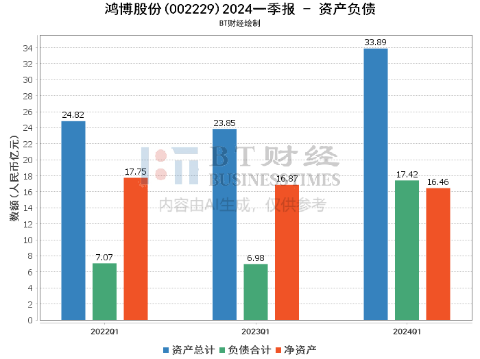 截至2024年3月31日,鸿博股份的资产总计为33.89亿元,较期初的30.81亿元增长了9.98%。这一增长主要得益于存货、在建工程和使用权资产的增加。存货从期初的2.44亿元增加到期末的4.11亿元,增长了68.49%,这表明公司在为现有订单备货。在建工程和使用权资产分别增长了436.28%和76.18%,反映了公司在设备购建和融资租赁方面的投资。负债方面,期末负债总计为17.42亿元,较期初的14.2亿元增长了22.75%。资产负债率从期初的46.07%上升到期末的51.42%,显示出公司在扩展业务的同时也增加了负债。