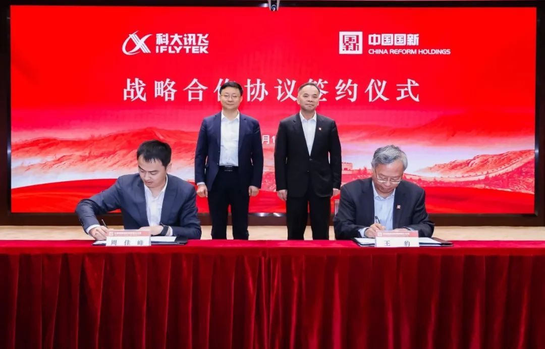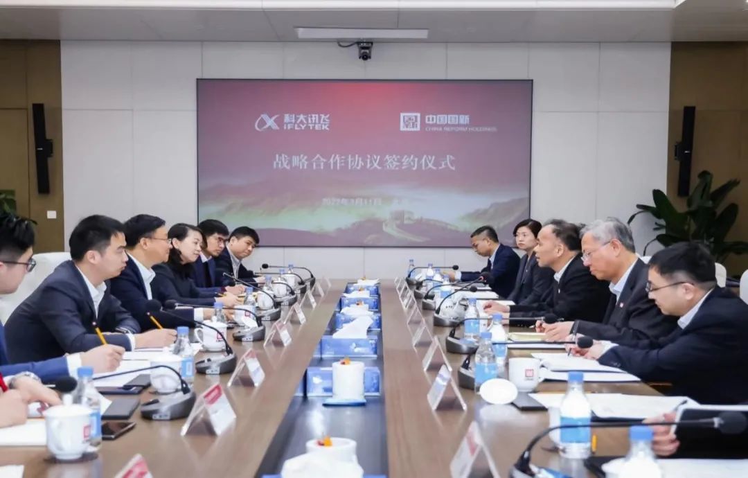 3月11日,中国国新与科大讯飞股份有限公司在北京签署战略合作协议。中国国新党委副书记、总经理莫德旺,科大讯飞董事长刘庆峰出席签约仪式并见签。中国国新党委委员、副总经理王豹,科大讯飞副总裁、教育BG副总裁周佳峰代表双方签署协议。科大讯飞党委副书记、教育BG副总裁任萍萍出席签约仪式。