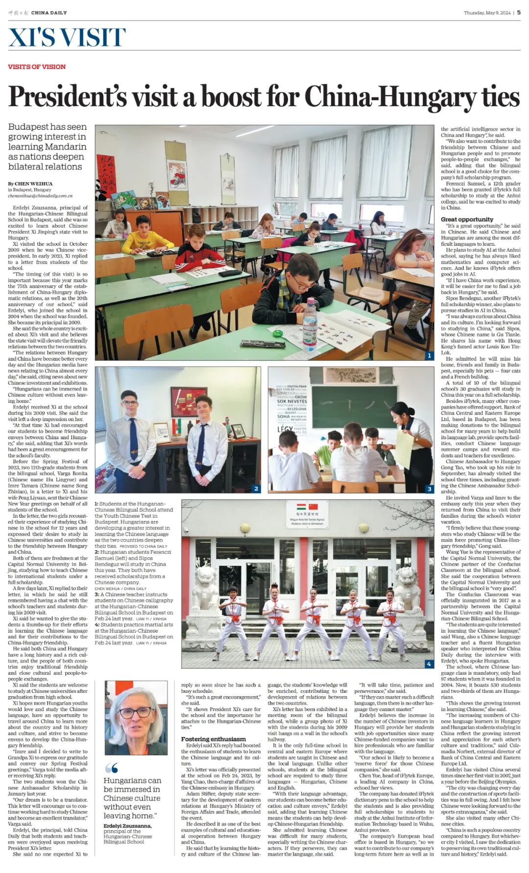 中匈建交75周年之际,5月9日,《中国日报》发表报道,通过讲述布达佩斯匈中双语学校师生和中国的故事展现了中匈两国的深厚友谊。