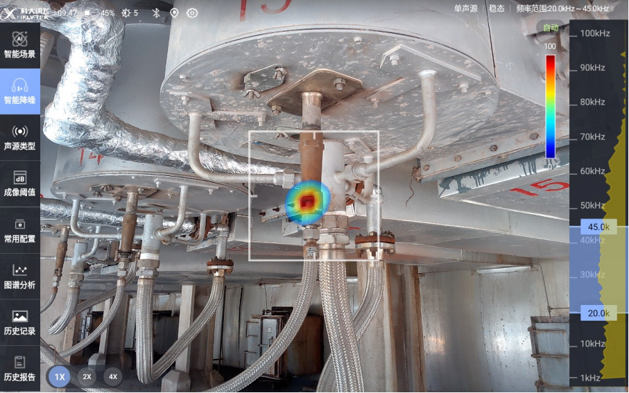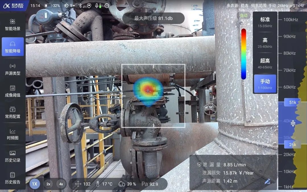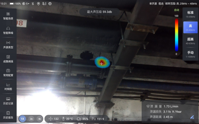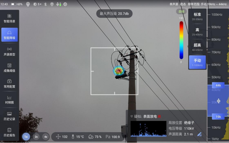 以AI声学成像仪为例,产品配备132路高精度麦克风阵列及超声波声源定位算法,支持170米超远距离精准定位局部放电、气体泄漏、设备异响等故障位置,让工业故障变得“看得见”。目前产品已广泛应用于电力、矿山、制造、钢铁、燃气、化工等20多个垂直领域,服务1000+行业客户,助力企业巡检效率提升80%以上,持续赋能工业智能化发展。