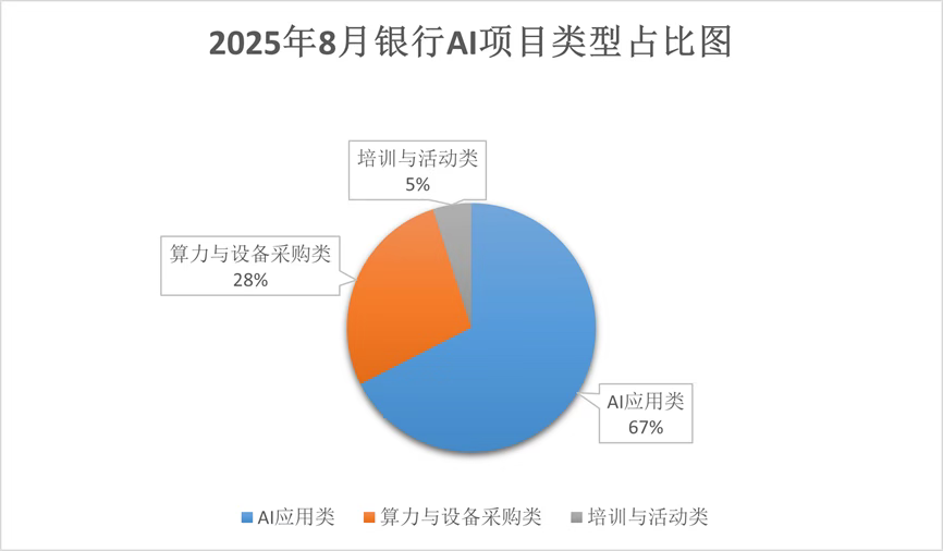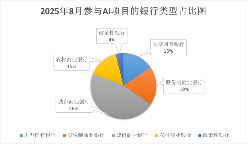 从不同类型银行的占比来看,城市商业银行参与度最高,占比近一半,可以看出这类银行在AI领域较为积极,试图借助AI技术实现差异化竞争,提升其在区域内的服务水平与市场份额。以上海银行为例,其建设大模型知识问答项目用于辅助生成尽调报告,该模型能结合本地企业特色和市场动态进行精准分析,让服务更贴合当地需求。