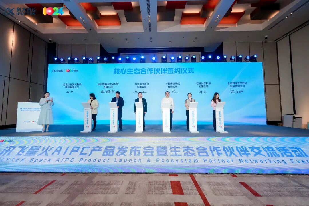 在签约环节,科大讯飞与伟仕佳杰、南天东华、华数传媒、华胜天成、联通数科、商海文天等多家企业完成合作签约,为AIPC的规模化推广奠定坚实基础。