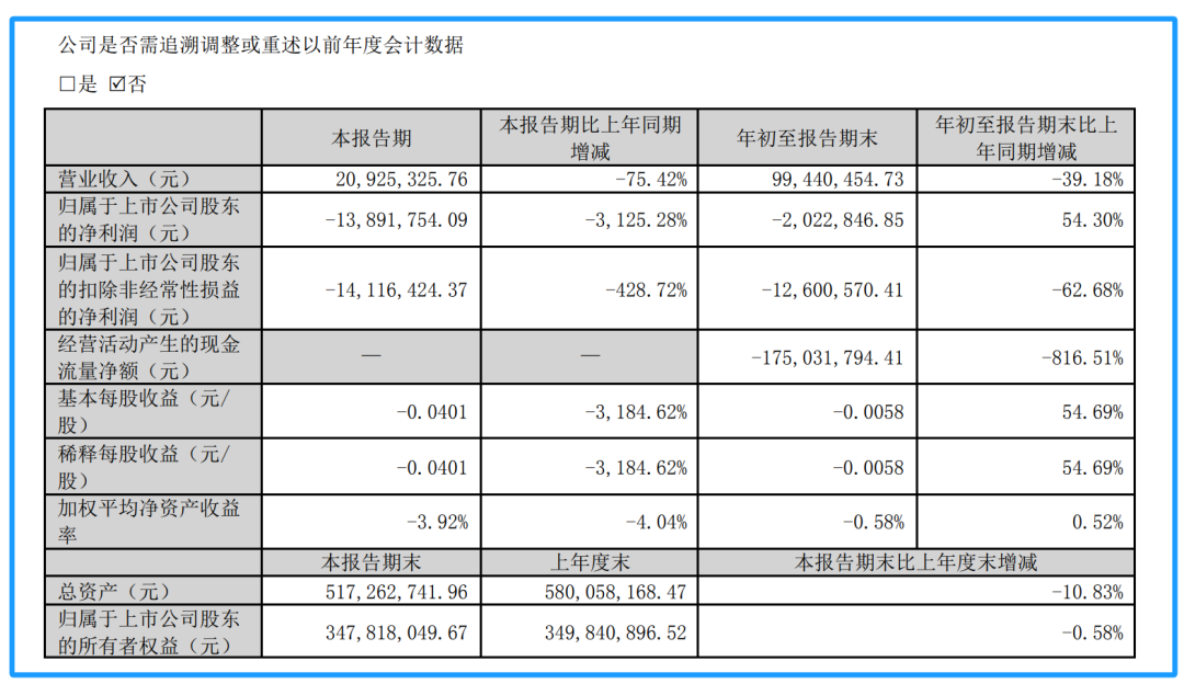 10月30日晚,奥维通信同步披露2023年三季度报告,公司第三季度实现营业收入2092.53万元,同比减少75.42%;实现净利润亏损1389.18万元。今年前三季度实现营业收入9944万元,同比减少39.18%;实现净利润亏损202.3万元,同比增长54.3%;基本每股收益-0.01元。