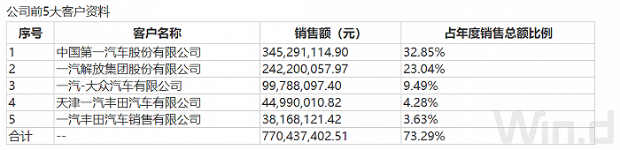 为何如此?从前五大客户或许能找到答案。年报显示,启明信息前五大客户均为一汽集团旗下公司,占年度销售综合比例达73.29%。若抛去与实际控制人中国第一汽车集团有限公司的关联性,公司拓展新客户能力存疑。营收过多依赖于前五大客户,也让公司未来成长空间较为局限。