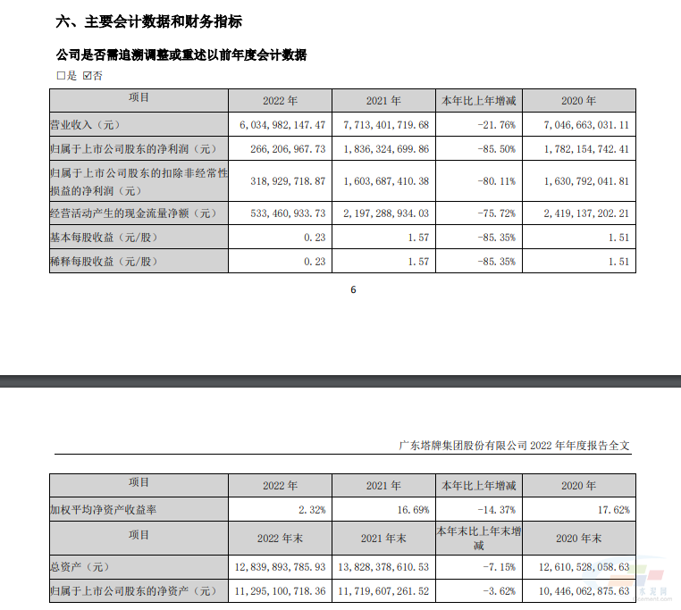 塔牌集团披露2022年年度报告,报告期内,公司实现水泥产量1844.57万吨,同比下降7.65%;水泥销量1826.44万吨,同比下降7.70%,熟料销量88.66万吨,同比增长了319.75%,水泥和熟料销量合计1915.10万吨,同比下降了4.25%;