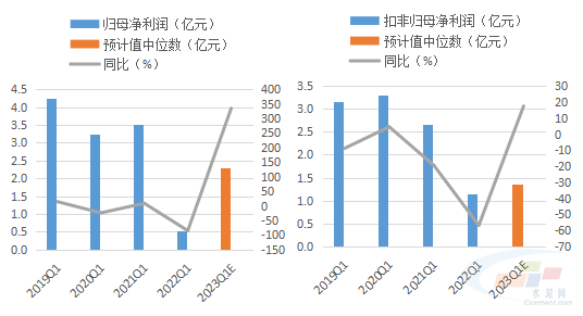 图1、2:2020-2023年一季度塔牌集团归母净利润及扣非归母净利润(亿元,%)