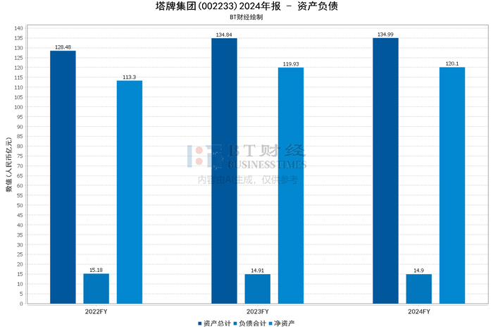 从资产负债数据来看,2024年末总资产为134.99亿元,同比增长0.11%,归属于上市公司股东的净资产为119.54亿元,同比增长0.02%,资产负债率期末为11.04%,期初为11.06%,整体资产规模略有增长且资产负债率维持在较低水平,表明公司资产结构较为稳定,偿债压力较小。