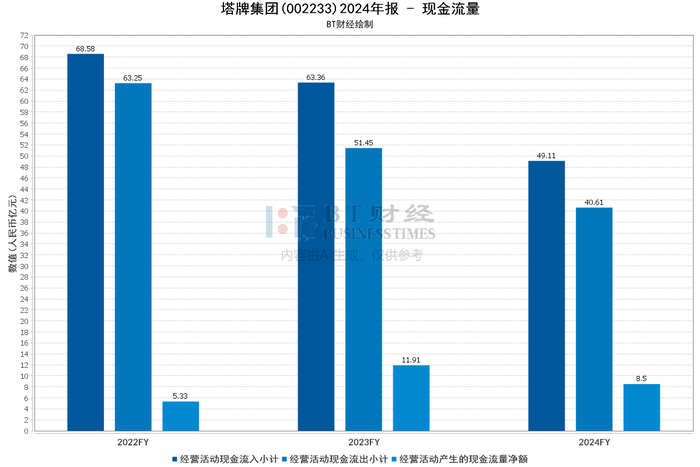 现金流量数据显示,2024年经营活动产生的现金流量净额为8.5亿元,同比下降28.67%,经营活动现金流入小计为49.11亿元。销售量价齐跌致使经营活动现金流减少,不过公司经营活动仍有现金流入,一定程度上保障了公司运营。投资活动现金流入为322.95亿元,筹资活动现金流入为33.55百万元,现金及现金等价物净增加额为6.9亿元,这表明公司在投资与筹资方面也有相应的资金运作。