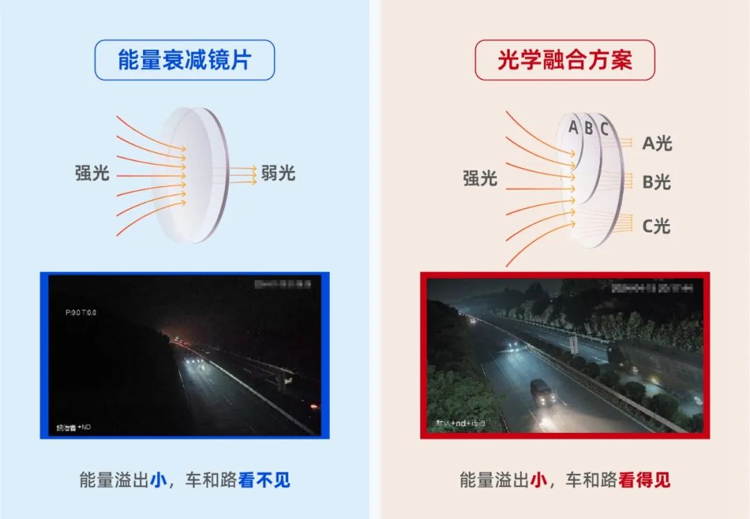 项目团队深入客户实际场景,结合TRIZ创新方法空间分离法,基于光学融合方案,在阻挡远光灯等过量光能量进入设备图像传感器的同时,保证路面、路侧、车身等微弱信号亮度尽可能多地进入传感器。