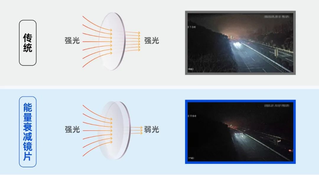 在高速道路,由于夜间缺少光源,恶劣情况下环境亮度在10?2cd/m2数量级,而车辆远光灯亮度则可以达到10?cd/m2的数量级。巨大能量反差下,传统摄像机画面中远光灯会大面积能量溢出,路面或车身信息会被淹没在巨大能量噪声下。