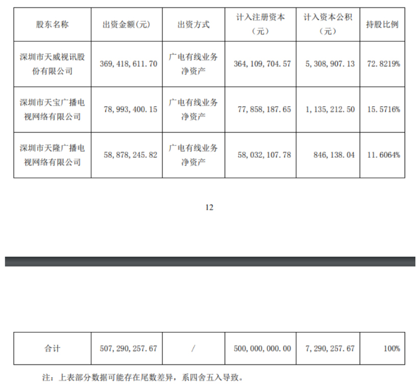 天威视讯以所有的广电有线业务相关资产(含负债)和广电有线业务子公司的股权出资;天宝网络以其所有的广电有线业务资产(含负债)出资;天隆网络以其所有的广电有线业务资产(含负债)出资。