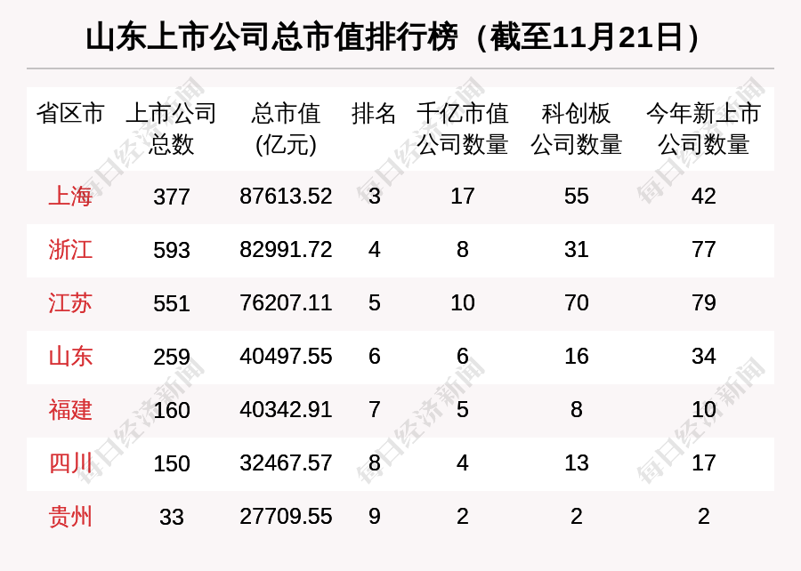市值方面,截至2021年11月21日,山东板块总市值为40497.55亿元,较前一周39899.55亿元,增长1.50%(加权平均)。
