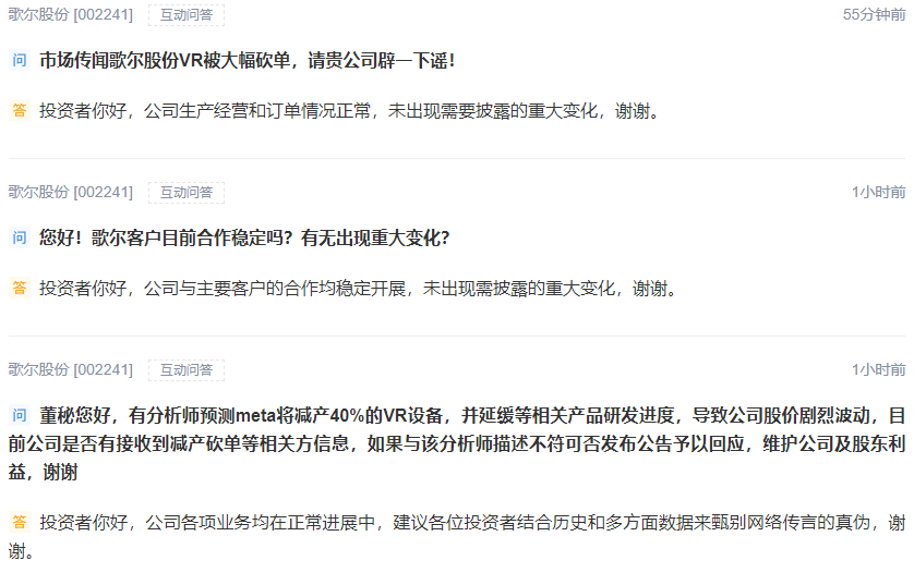 从董秘的回答来看,没有承认Meta减产40%VR设备的消息将影响公司。但从股价上来看,就已说明事情是真的。