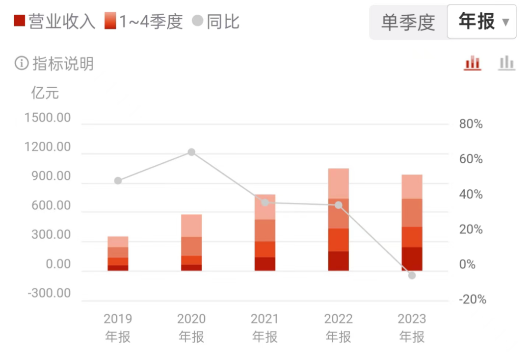 据数据显示,2023年,歌尔股份实现营业收入985.74亿元,同比下降6.03%;归属于上市公司股东的净利润为10.88亿元,同比下降37.8%;扣非净利润8.6亿元,同比下降47.16%。