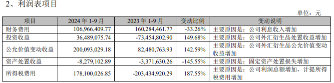 对于报告期内公司净利润的大幅增加,歌尔股份2024年三季报的利润表项目显示,报告期内,公司的投资收益和公允价值变动收益同比均超过了140%。