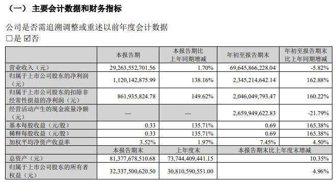 2024年第三季度,歌尔股份基本每股收益0.33元/股,同比增加135.71%;前三季度,基本每股收益0.69元/股,同比增加165.38%。