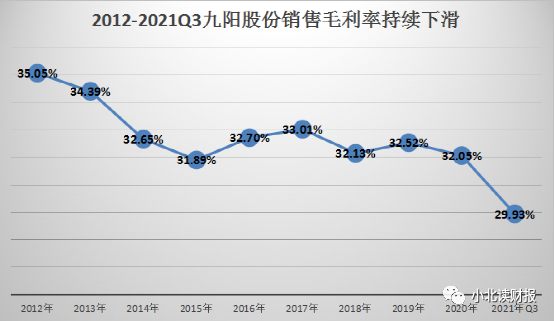 但无奈2021年即使销售费用率有所下降,实际毛利率下滑幅度更大(主要是低毛利率的营养煲系列产品快速增长所致),想来,在毛利率无法预测甚至毛利率会持续下滑的情况下,九阳今年或又免不了较高的销售费用投入。
