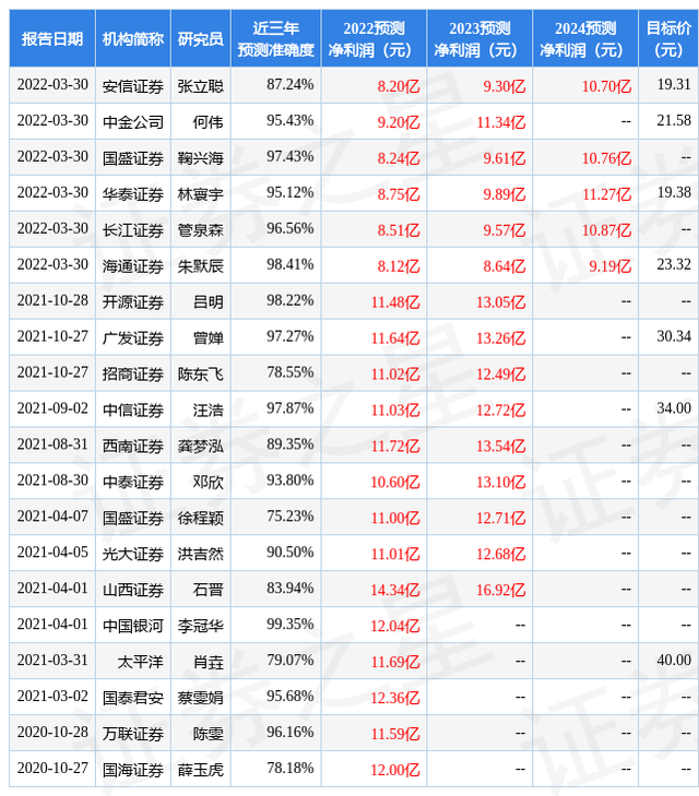证券之星数据中心根据近三年发布的研报数据计算,中国银河李冠华研究员团队对该股研究较为深入,近三年预测准确度均值高达99.35%,其预测2022年度归属净利润为盈利12.04亿,根据现价换算的预测PE为10.66。