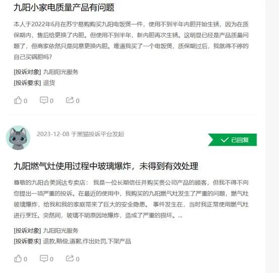 众所周知,赛道竞争越激烈,越凸显产品个性、特色、专业化的重要性,高质量研发是关键。浏览黑猫投诉,一些质量微词需引起企业警惕,例如电饭煲内胆生锈、燃气灶使用过程中玻璃爆炸等等。