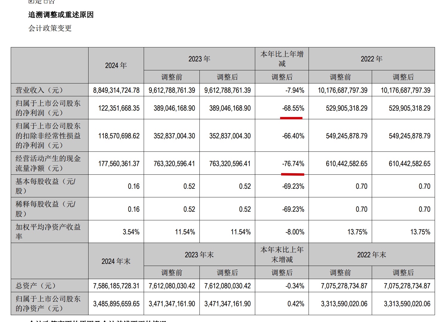 九阳股份有限公司(九阳股份,002242.SZ)发布2024年年度报告显示,营收同比下降7.94%为88.49亿元,归母净利润大幅下滑近七成。