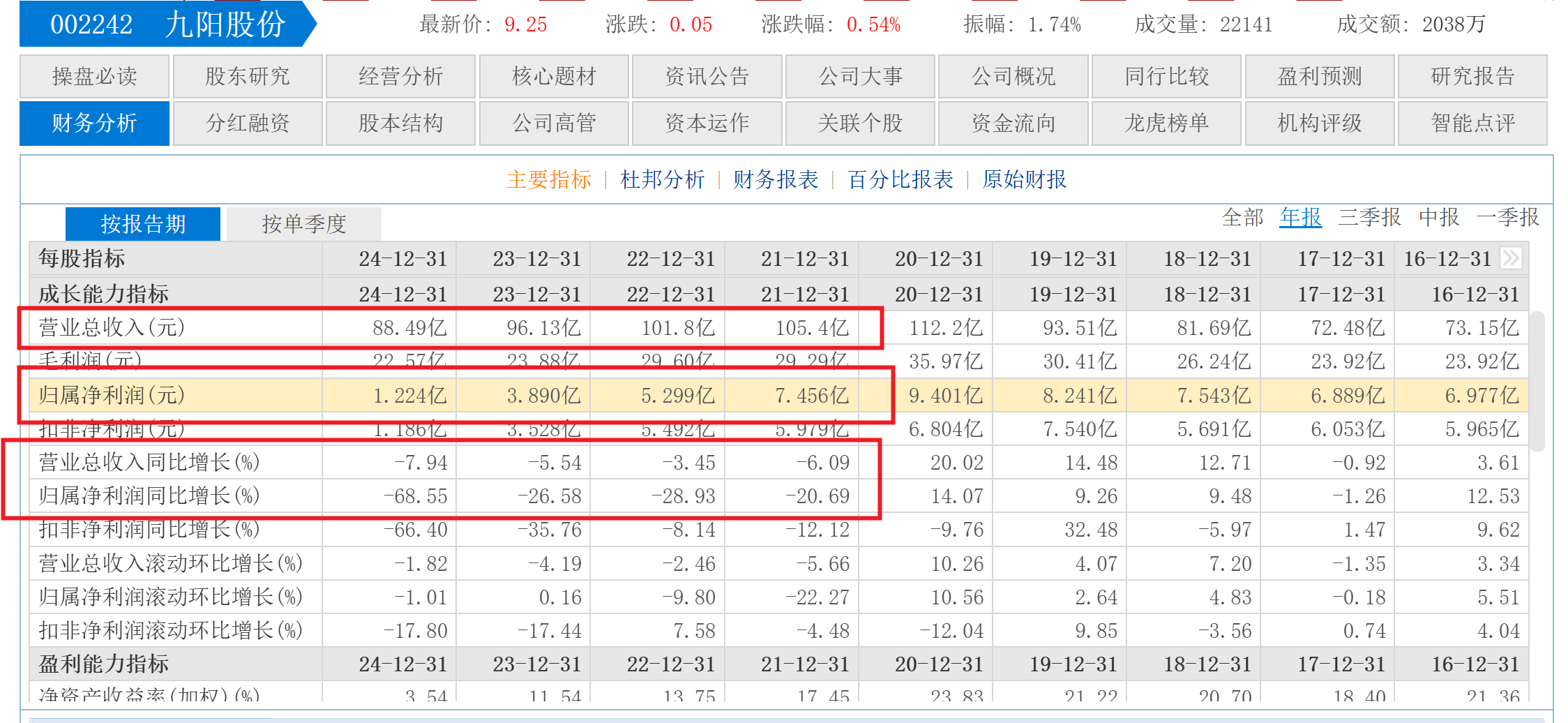 近期,九阳股份发布了总经理辞职公告。此外,该公司连续三年营收净利双降,揭示的不仅是报表上的数字困局,更是一个时代消费逻辑的深刻变迁。曾经凭借豆浆机单品横扫千军的九阳,正站在传统小家电转型的十字路口,而厨房里的这场变革远比想象中更为复杂。