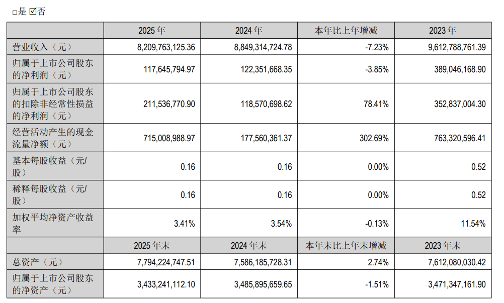 2025年,九阳股份营业收入82.1亿元,较上年同期下降7.23%;实现归属于上市公司股东的净利润1.18亿元,同比下降3.85%。