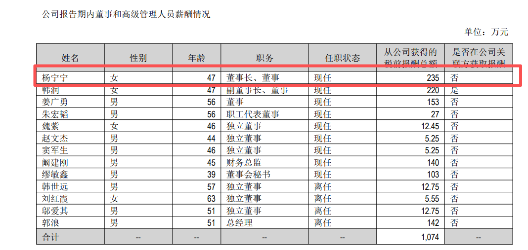 从薪酬来看,九阳股份董事长杨宁宁2025年从公司获得的税前报酬总额为235万元。2024年其获得的税前报酬总额230万元,2023年同期为278.63万元。